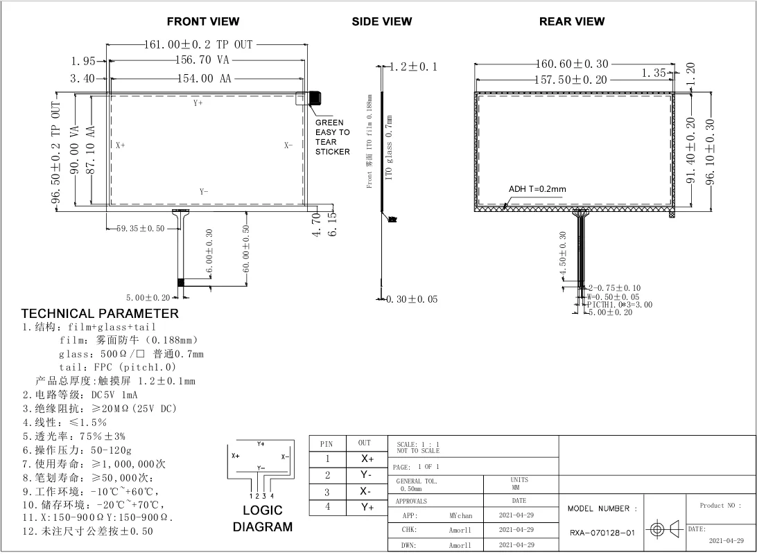 164,8 ± 0.2mm × 99.8 ± 0.2mm × 1,47 ± 0.15MM